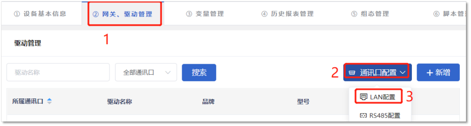 网关配置驱动路径:【②:网关驱动管理】→【+新增】。在弹出界面中填写驱动信息: