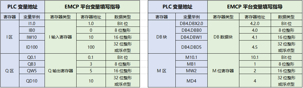 【寄存器地址】:地址填写时不带寄存区标志符,与实际寄存器地址一致。具体下图“平台地址填写举例”。