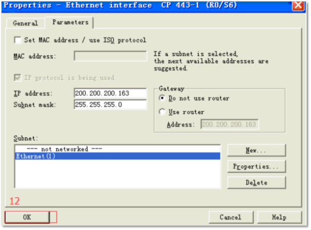 添加后会弹出Ethernet interface CP443-1设置窗口,如下图所示: