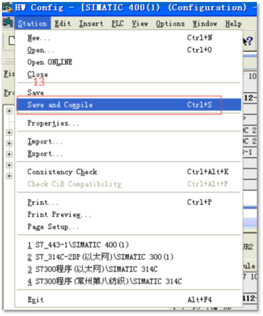 步骤九、将设置好的配置文件保存:单击菜单Station->Save and Compile,如下图所示: