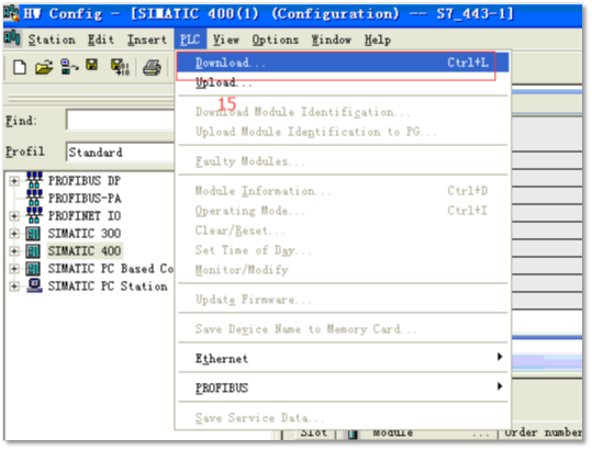步骤十、配置好后,单击菜单PLC->Download进行下载。