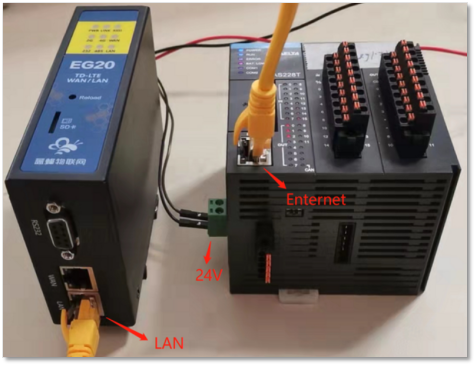 硬件接线:使用网线连接网关的LAN口和PLC的LAN口。也可通过交换机进行连接。
