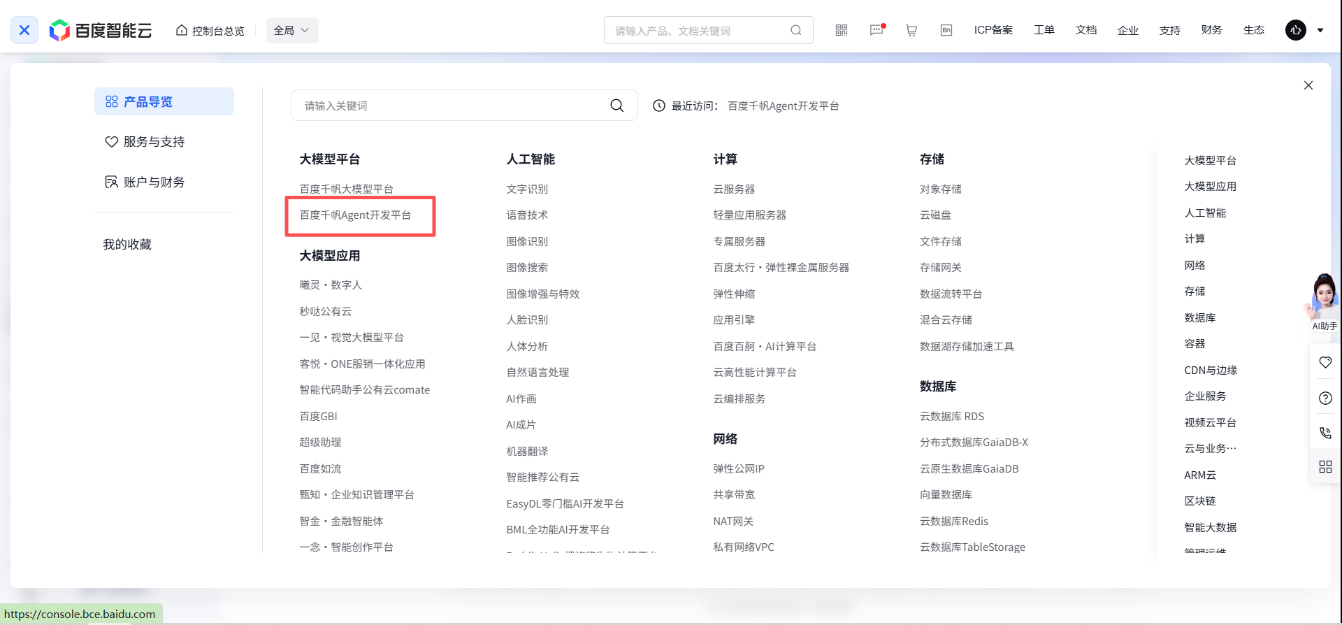 在打开的功能选项中 ,选择百度智能云千帆AppBuilder平台