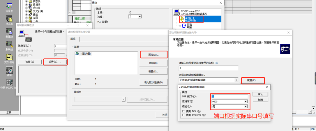 【通讯口配置】:此按钮可设置通讯口参数,和之前的步骤设置相同,如果之前设置过,则不需要再次点击此项。