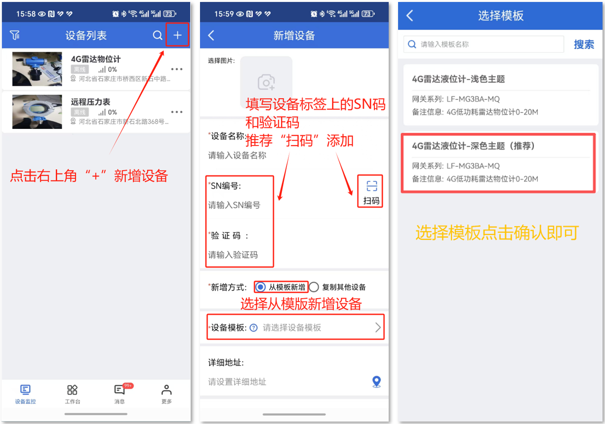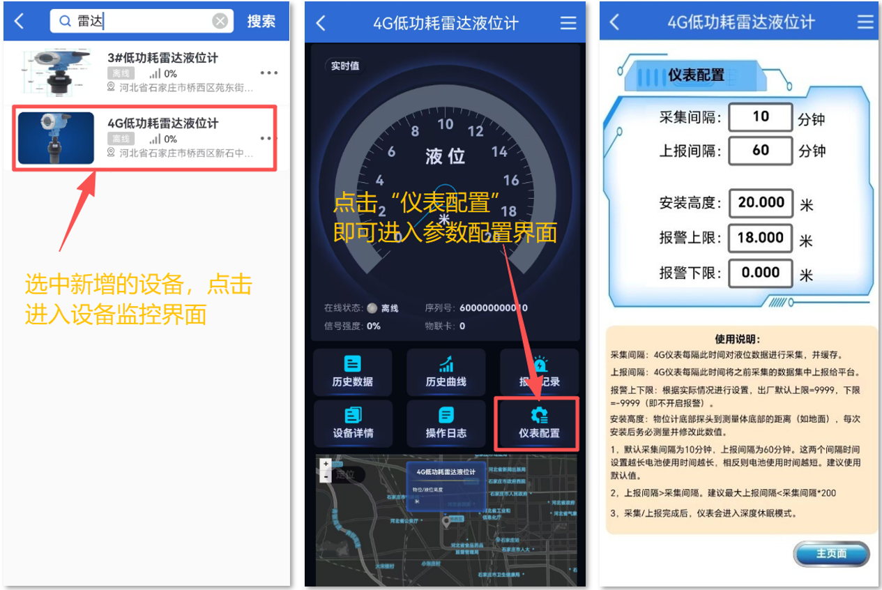 4G低功耗仪表支持电脑网页、手机APP(安卓/苹果),微信公众号、手机网页,4种访问渠道(公用同一账号)。以下将以常用的手机APP进行讲解说明。
