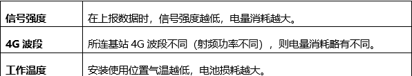 电池工作年限: 19AH(1节ER34615+RHC1520)电池不低于4年(10分钟采集/1小时上报/信号强度>50%/使用温度>-10℃条件下),缩短采集和上报时间会降低电池使用时长,反而会延长时长。