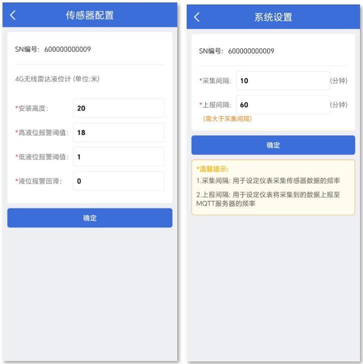 注意:采集间隔/上报间隔采用默认即可,间隔时间设置越长电池使用寿命越长,相反则电池使用寿命越短,设置要求:上报间隔≥采集间隔,上报间隔≤采集间隔×200。