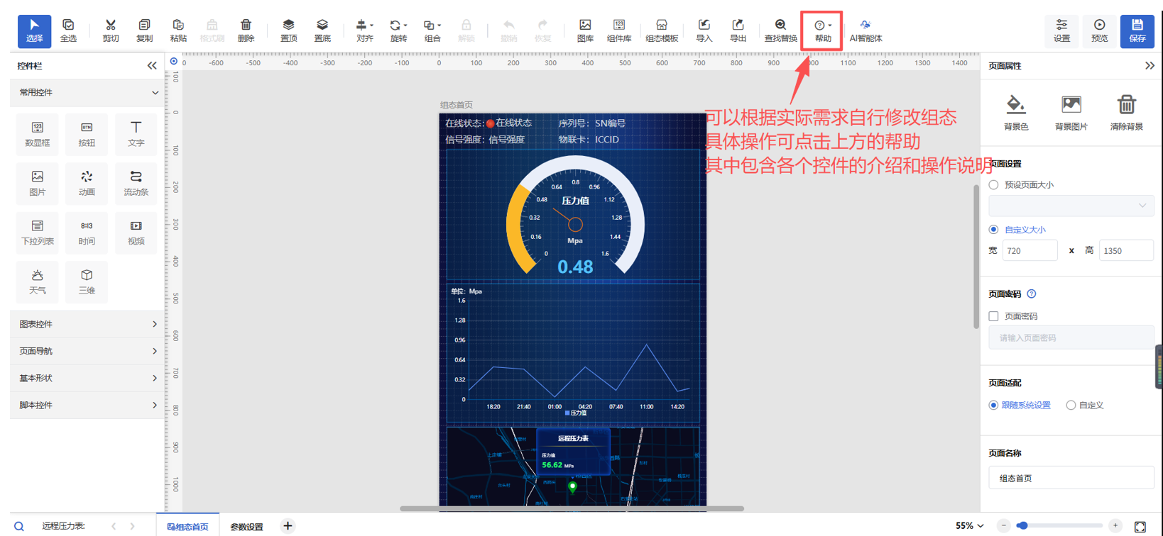 当设备解除绑定模板之后,点击“组态管理”即可编辑组态界面。