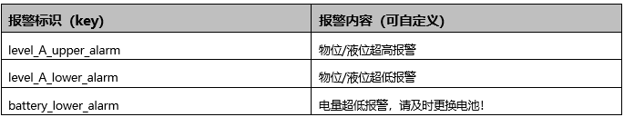 报警设置中,“报警标识”参数固定如下,必须按此填写,不可修改。“报警内容”可自定义修改。