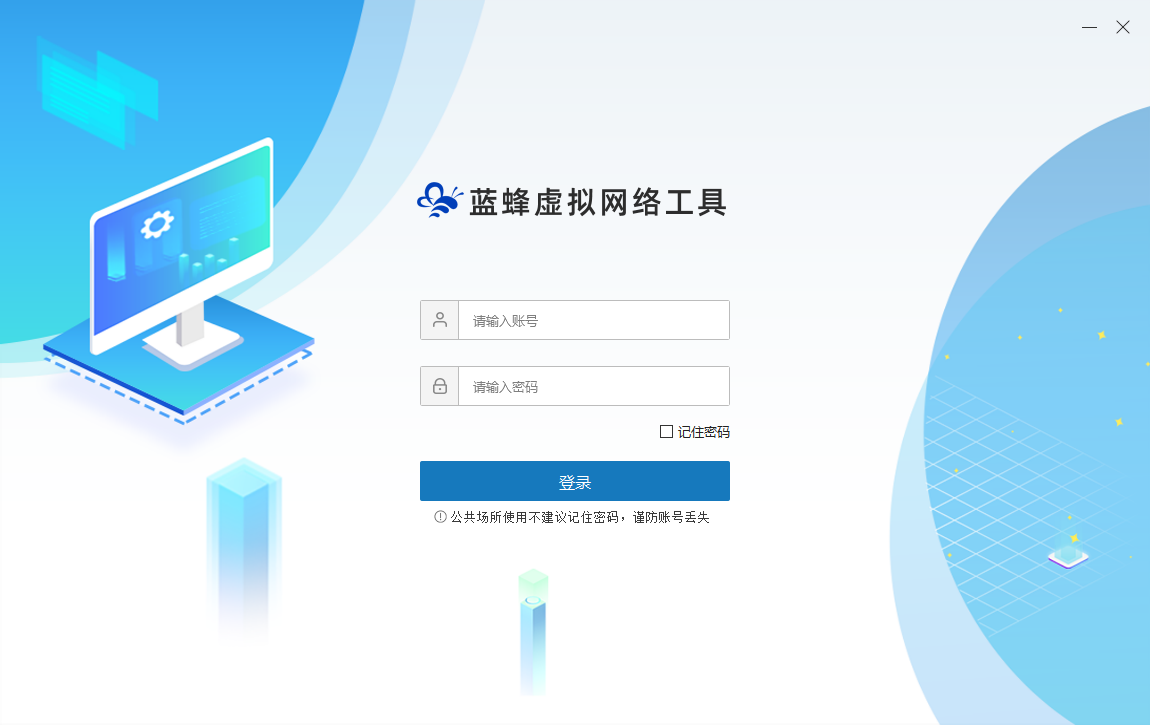 第一步:使用管理员身份打开【蓝蜂虚拟网络工具】并输入账号密码(帐号密码与EMCP云平台账号密码通用)。