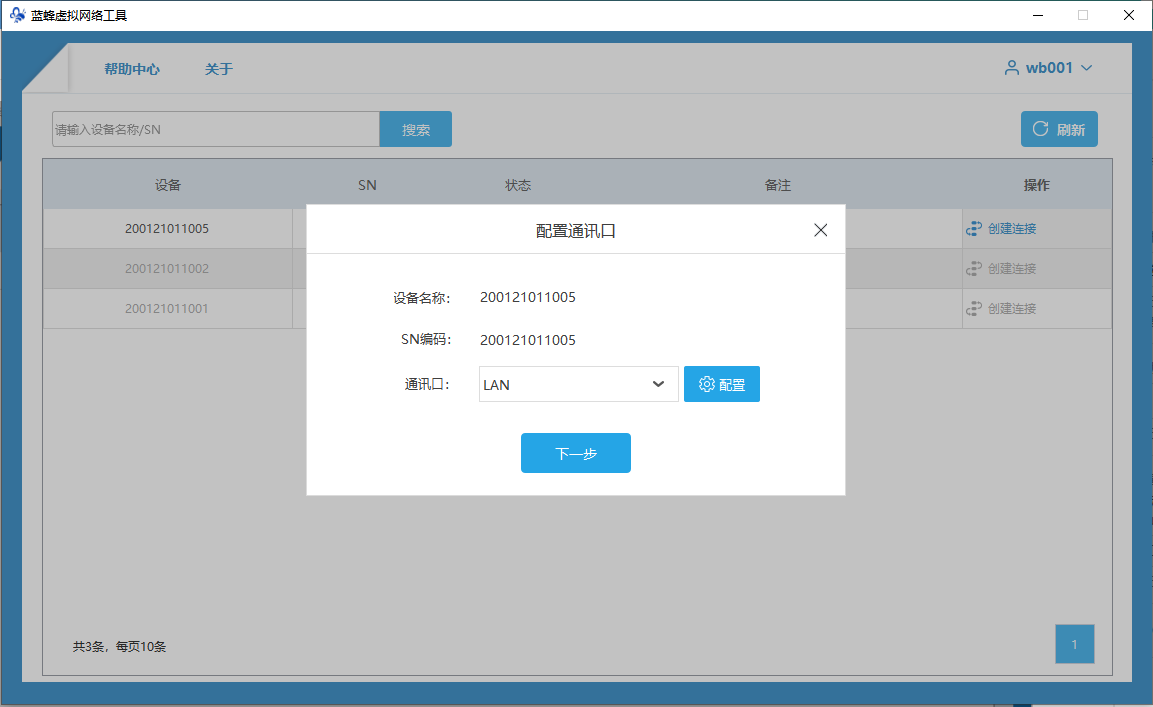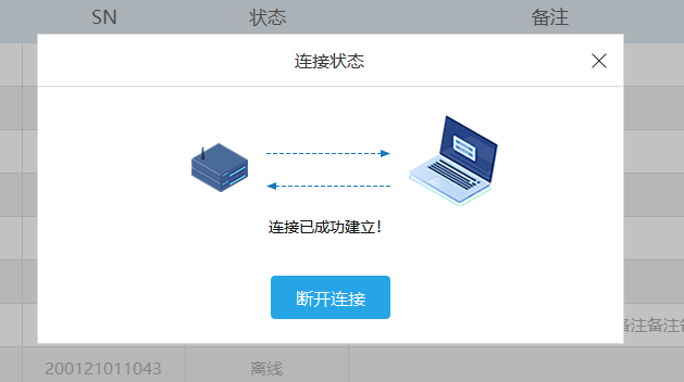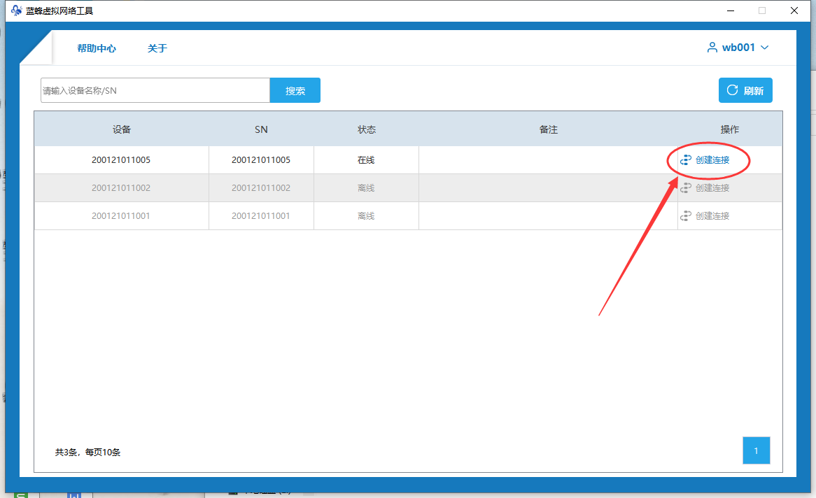 第二步:登录成功后,在需要进行远程下载的设备后方点击【创建连接】,如下图:
