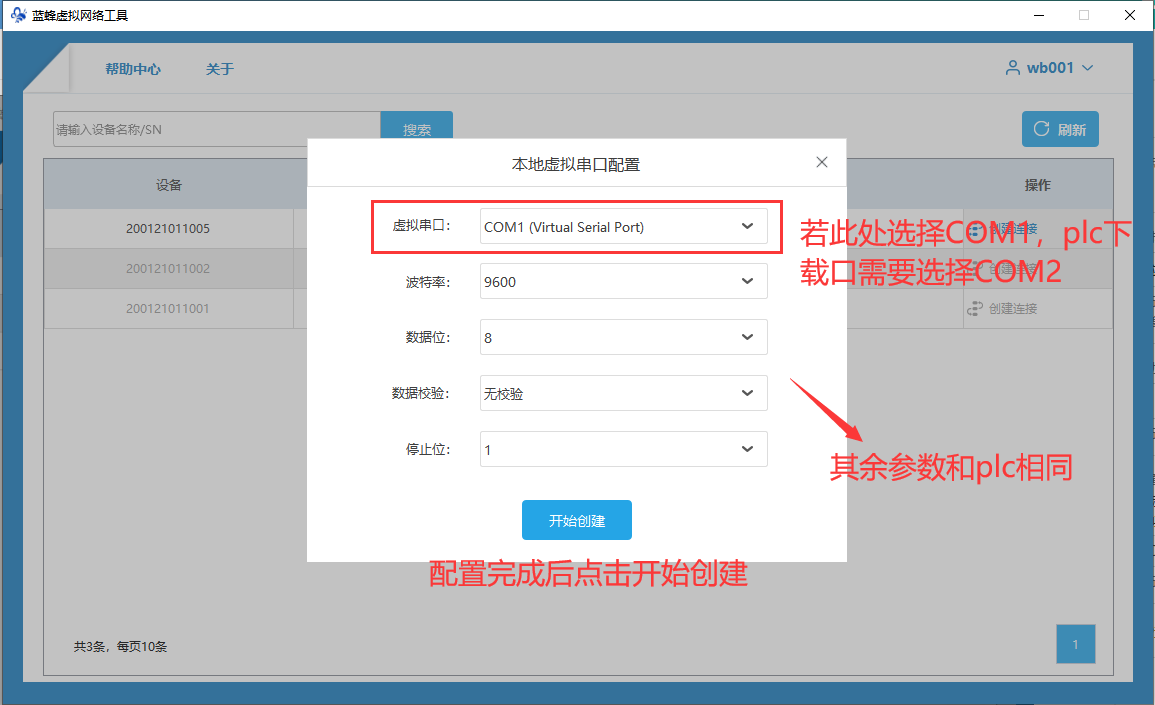 第五步:进入“本地虚拟串口配置”,配置相关参数,配置完成后点击【开始创建】。