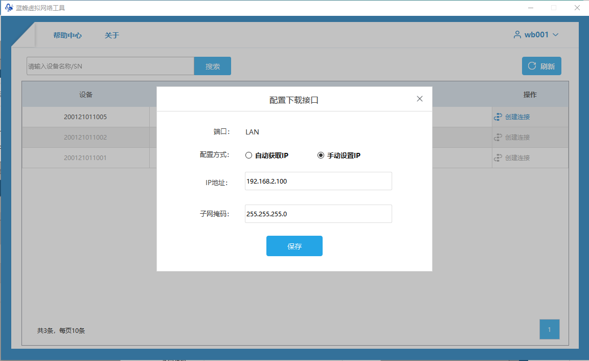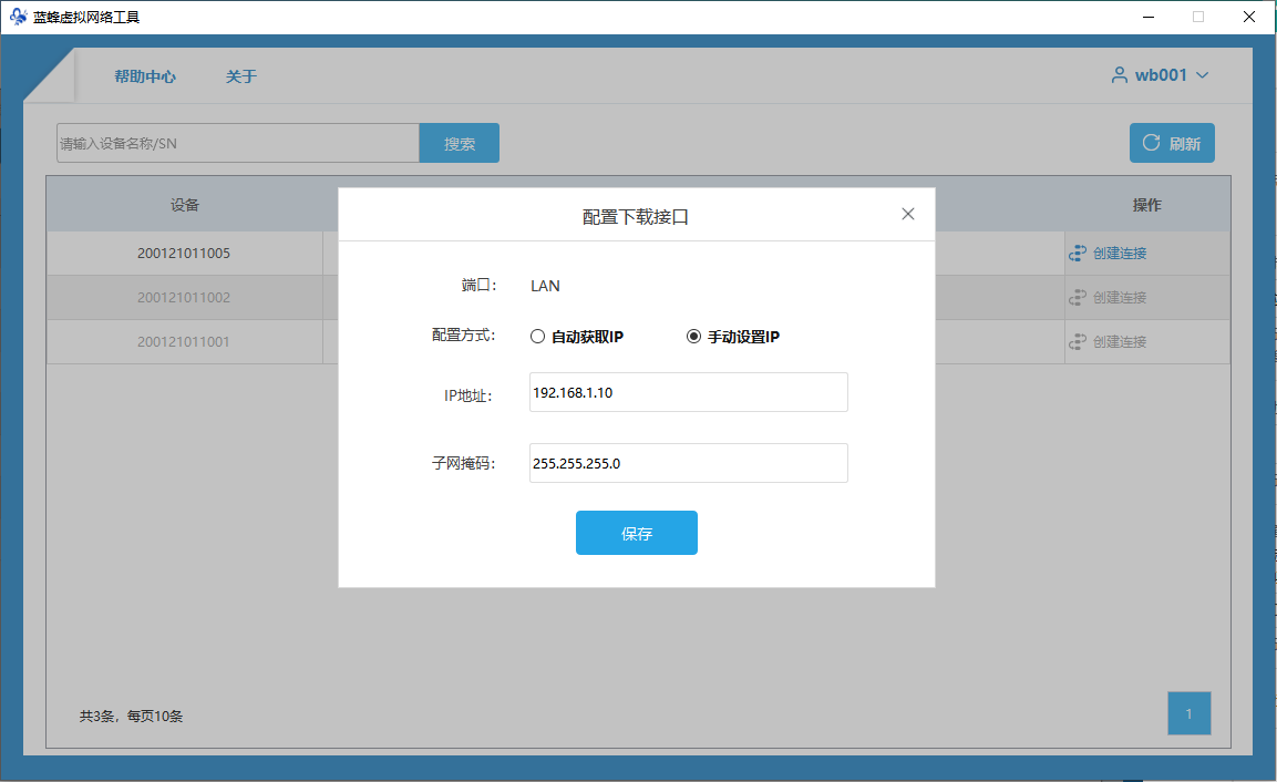 3、保持EG20网关为在线状态,使用虚拟网络工具过程中不要断电。