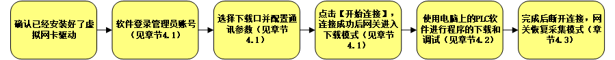 4. 虚拟网络工具断开连接的情况下,由于网络波动等原因会有小概率的不能退出下载模式的现象,如果遇到断开连接后,数据不能正常采集的情况,重启网关即可恢复正常。