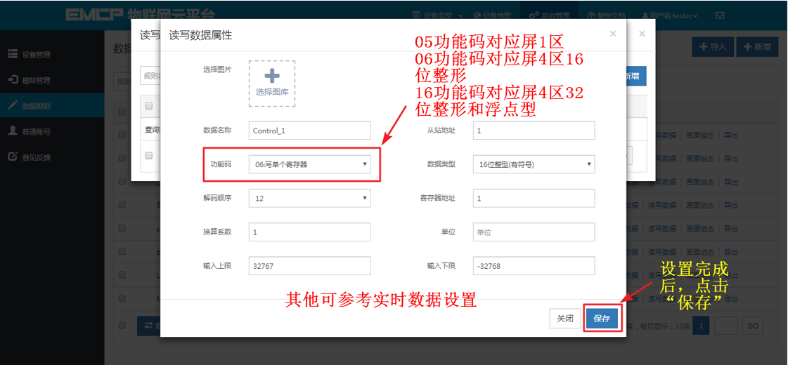 读写数据:无需在DTU配置Modbus定时采集通道,可直接通过平台对下位设备进行数据的手动读写操作;